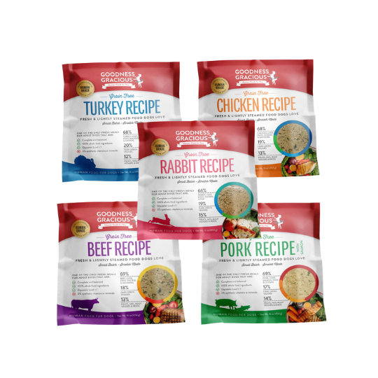 Human-grade, gently-cooked, grain-free food dogs love. Designed by veterinarians, formulated by nutritionists and handmade for the love of dogs. Our fresh food is complete and balanced for canine adult maintenance using only whole foods. Mix and match recipes to your liking!